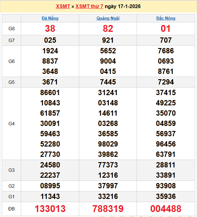 Chuyên gia Lô Đẹp Hôm Nay soi cầu XSMT 17-1-2026 Thứ 7 hàng tuần, thống kê tổng hợp kết quả xổ số XSDNG – XSQNG – XSDNO và tần xuất lô tô đang chạy điều, để đưa ra tính toán xác xuất dự đoán cầu lô bạch thủ, song thủ, lô xiên , cầu lô 3 càng và dàn đề đặc biệt có khả năng về cao chiều nay.