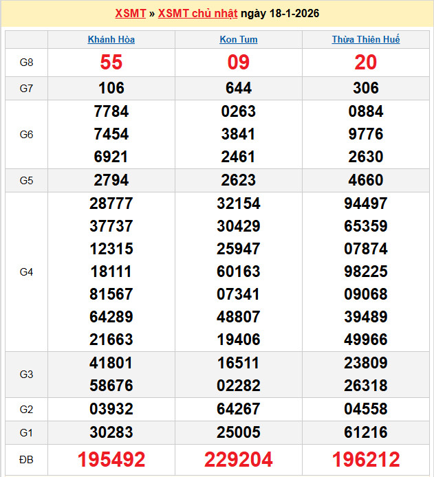 Chuyên gia Lô Đẹp Hôm Nay dự đoán soi cầu XSMT 18-1-2026 Chủ Nhật hàng tuần. Cùng các cao thủ chốt số giờ vàng gồm đài XS Khánh Hoà – Kon Tum và tần xuất lô tô đang chạy điều, để đưa ra tính toán xác xuất dự đoán kết quả cầu lô giải đặt biệt đầu đuôi, giải lô tô 2 số, lô xiên chính xác nhất, được thực hiện bởi Admin và cùng hàng nghìn thành viên tham gia tại diễn đàn của chúng tôi..