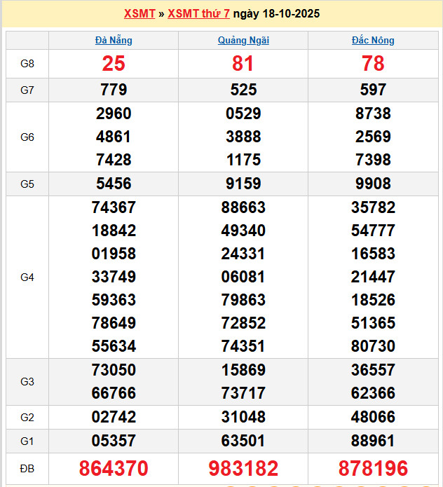 Chốt số lô dự đoán Đà Nẵng 18-10-2025