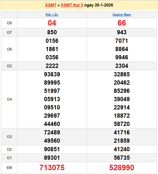 Chốt số lô dự đoán Quảng Nam 20-1-2026