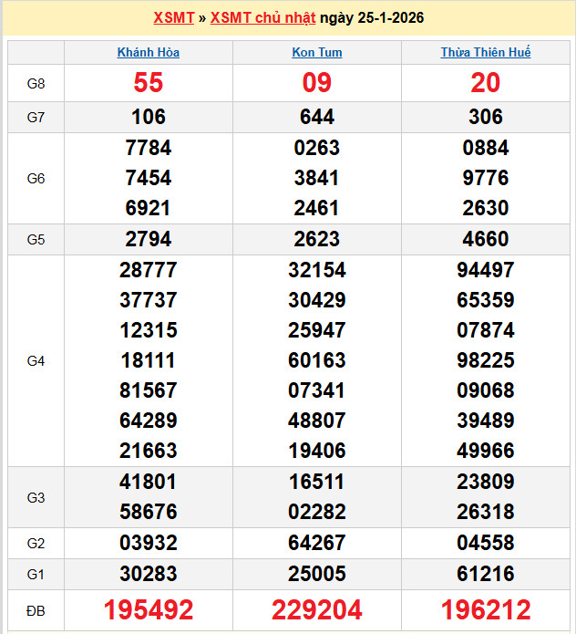 Chuyên gia Lô Đẹp Hôm Nay dự đoán soi cầu XSMT 25-1-2026 Chủ Nhật hàng tuần. Cùng các cao thủ chốt số giờ vàng gồm đài XS Khánh Hoà – Kon Tum và tần xuất lô tô đang chạy điều, để đưa ra tính toán xác xuất dự đoán kết quả cầu lô giải đặt biệt đầu đuôi, giải lô tô 2 số, lô xiên chính xác nhất, được thực hiện bởi Admin và cùng hàng nghìn thành viên tham gia tại diễn đàn của chúng tôi..