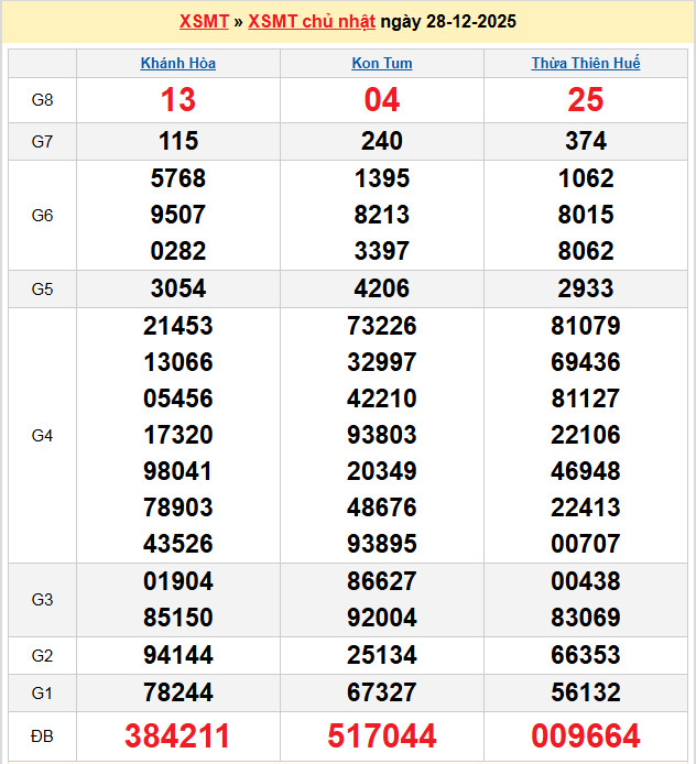 Chuyên gia Lô Đẹp Hôm Nay dự đoán soi cầu XSMT 28-12-2025 Chủ Nhật hàng tuần. Cùng các cao thủ chốt số giờ vàng gồm đài XS Khánh Hoà – Kon Tum và tần xuất lô tô đang chạy điều, để đưa ra tính toán xác xuất dự đoán kết quả cầu lô giải đặt biệt đầu đuôi, giải lô tô 2 số, lô xiên chính xác nhất, được thực hiện bởi Admin và cùng hàng nghìn thành viên tham gia tại diễn đàn của chúng tôi..