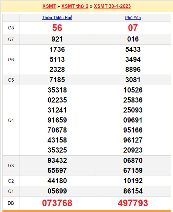 Soi cầu xổ số Thừa Thiên Huế 30-1-2023